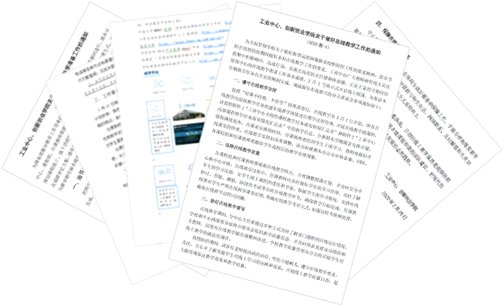 中心前后拟定和发布了《工业中心在线教学工作预案》、《工业中心关于做好在线教学准备工作的通知(2020教-1)》、《工业中心关于做好在线教学工作的通知(2020教-2)》等重要文件和通知。要求所有的老师提高认识,主动学习在线教学平台和教学工具的使用方法,以最饱满的状态积极投入到在线教学的准备工作中。