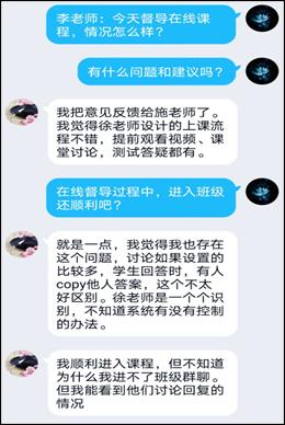 课后,教学办与授课教师及时沟通,了解授课过程中的疑点、难点,关注新的授课形式对于教师的适应程度,同时了解教师在授课中的感受与收获,并提出改进意见和建议。