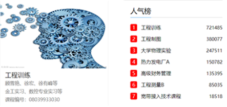 金工实习和电子综合实训面向全校50个班级开展线上教学,老师们主动将挑战转变为动力,将信息技术和课程深入融合。教学资源丰富、直观、生动,取得了良好的效果。金工实习稳居校本课程人气榜第一名。