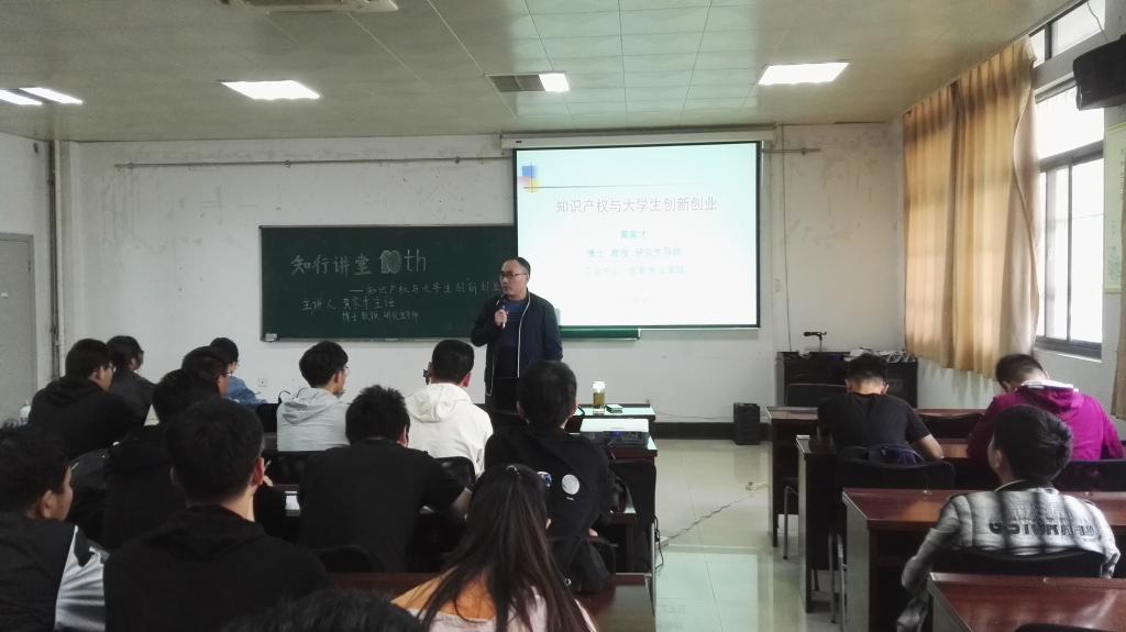 知识产权有什么用,它对于有志于从事“双创”的同学们意味着什么?4月17日,由工业中心主办的“知行讲堂”第十期“知识产权与大学生创新创业”在至真苑基础实验中心B114举行,该中心主任黄家才教授受邀主讲。