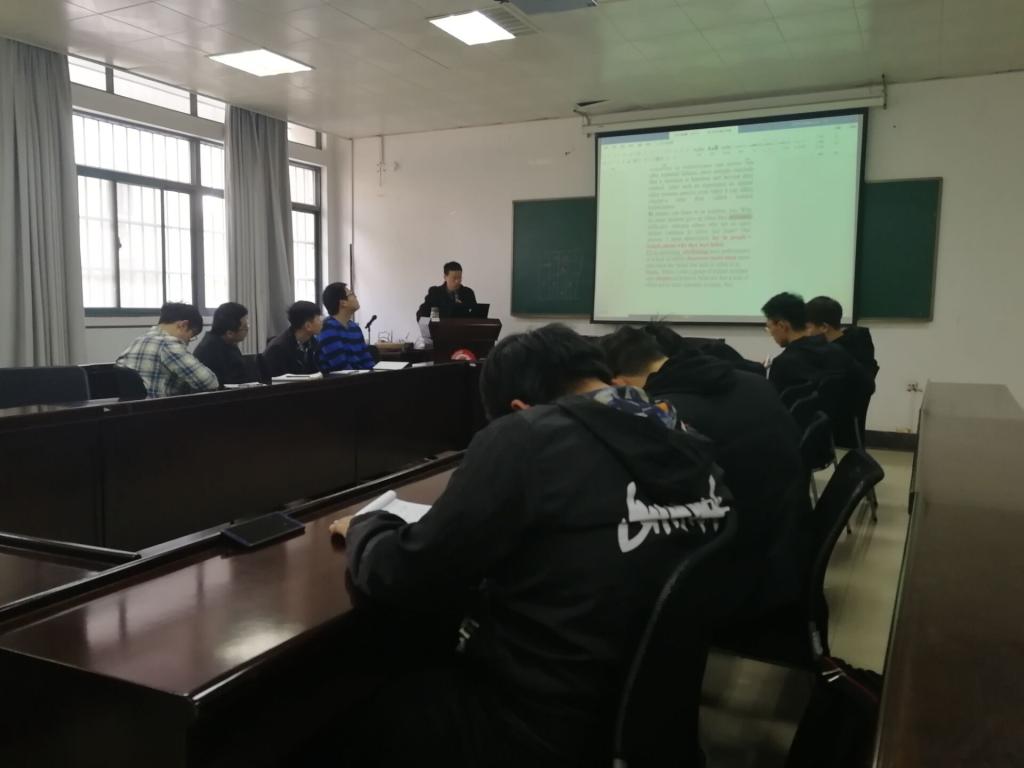 三月中旬,工业中心党总支副书记王雪飞分年级连续召开学生代表座谈会,了解学生的思想动态之余发现英语学习是大多数同学的难点痛点,中心立即着手实施英语学习班计划。4月1日下午三点四十,2019年第一期英语学习班在工业中心B109会议室正式开课。