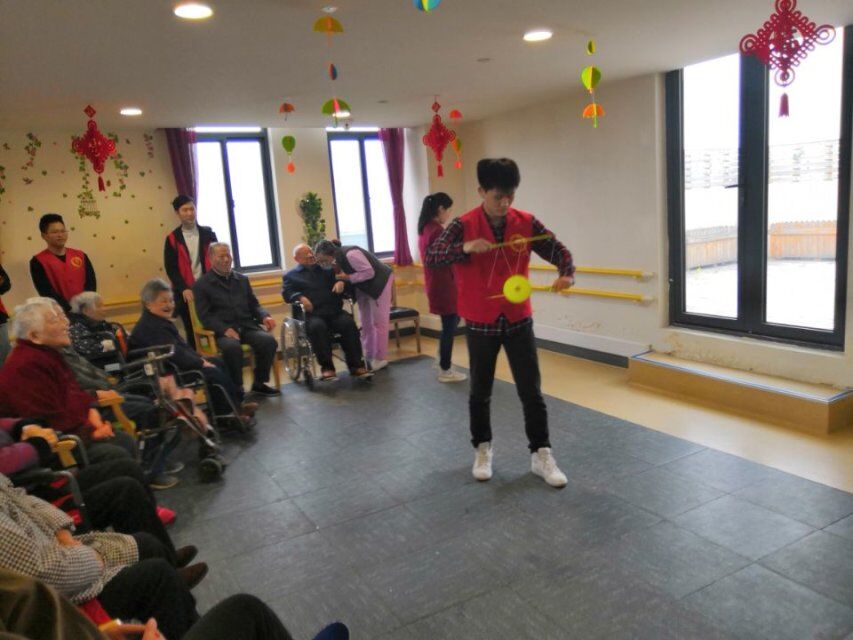 此次志愿服务活动内容丰富多彩,有唱歌、朗诵、街舞、炮拳等等。一个个精彩的节目,让平日宁静的护理院内洋溢着家的温馨,闪耀着爱的光芒。在持续一个多小时的志愿服务活动中,志愿者们用自己的热情和行动为老人们送去了心灵的慰藉。动听的歌曲、优美的舞蹈、柔中带刚的炮拳,不时赢得老人们的阵阵欢笑和热烈的掌声。活动之余,志愿者们还与老人们一起聊天,听他们讲述着自己的故事。活动结束时,老人们拉着志愿者们的手依依不舍,同时也对同学们带来的精彩表演和陪伴表示感谢。