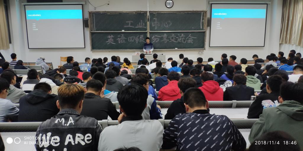 在国家英语四级考试即将到来之际,为了让2018级新生更好地掌握备考技巧,让更多同学顺利通过,11月4日晚,工业中心在我校东202教室举行“英语四级考试经验交流会”,该中心D机加工171高富康、D机加工172马威、D自集成171班戴建峰等十位已通过英语四级的同学受邀进行了交流分享,全体新生一起参加了活动。
