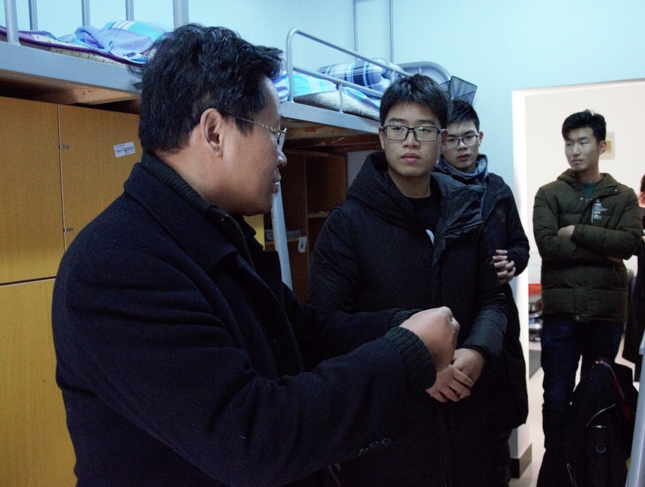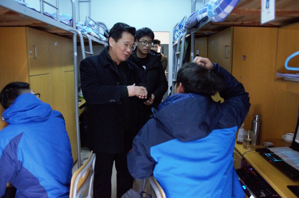 2017年12月18日上午,工业中心主任郁汉琪前往数控171班级学生宿舍看望同学们。