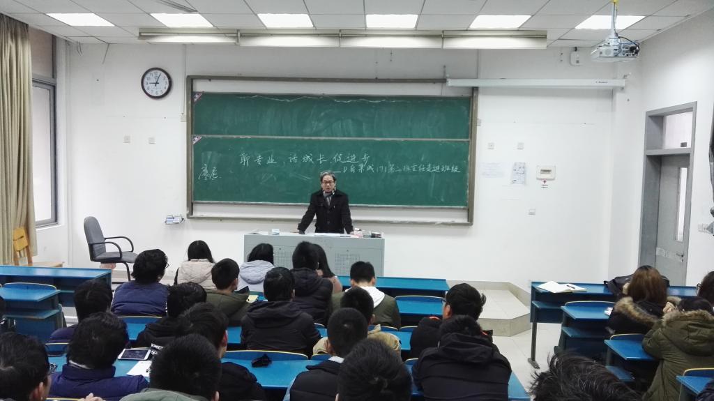 许老师结合“十九大”报告及刚刚举行的国家公祭仪式,告诉同学们我们身处在一个新时代。和平是不能靠别人施舍的,今日的和平是建立在国家日益发展壮大的基础上的,同学们要把个人的发展同国家的前途命运相结合,唯有踏实进取、扎实学好本领,才能不辜负新时代的新要求,共筑中国梦。接着,他从树立目标、专业介绍、素质培养及如何学好专业知识、攻克“英语、高数”关等方面进行了介绍。最后,他还提出了大学期间不能触碰的几条“红线”,比如考试作弊、“网贷”、赌博、毒品、社交“陷阱”及传销等。原定半个小时的班会开了一个小时才结束,许老师丰富的人生经历、扎实的专业功底及语重心长的谆谆教诲令该班学生受益匪浅。