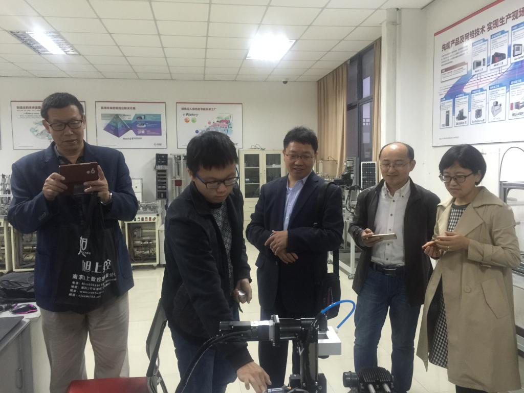 殷埝生副主任对黄鹤松一行的到来表示热烈欢迎,并陪同该校一行参观考察了工业中心机电综合实验中心、智能制造实验中心、创新学院创新基地和自动化系统集成技术实验中心。介绍了中心校企合作共建、项目教学、人才培养、科技竞赛以及创新创业经验与成果。他们对工业中心的实践教学改革和人才培养等方面所做的尝试给予了充分肯定,认为很多做法值得借鉴,希望双方加强交流与合作。
