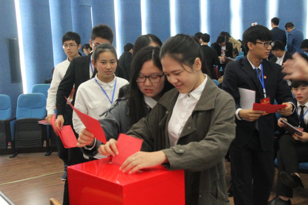 大会正式会议开始后,先由第二届分团委副书记褚蕾、学生分会主席薛沁刚做工作报告。他们对上一届的团学工作进行了详细的梳理、总结和反思,并对即将产生的新一届学生干部提出了一些工作建议。接着,新一届分团委、学生分会委员候选人依次上台竞选,他们衣着得体、精神抖擞,各自从不同方面展示了自己的风采。经过紧张的计票、监票及大会主席团确认,王浩、王萱、刘韦康、孙峥、朱俞楠、陈淳、陈讲鹏、陈秋恬、陈晓波、陈子洋、季坤、杨亿、苗润怡、周嬴、葛蝶、惠霄、曹寅凯、戴程涛等十八位同学当选为工业中心第三届分团委、学生分会委员。
