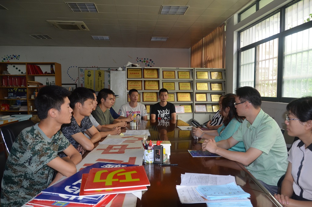 工业中心共8名同学正式确定合格入伍,征兵联系人参加了雨花区武装部统一组织的政审工作。按照学校要求,在工业中心内部组织欢送8名同学入伍的欢送会。9月7日,中心学工办在B108,B109房间组织了送兵活动,班主任牟娟、卞荣老师,参加了活动。党总支副书记王灿主持座谈,向各位即将奔赴军营的同学提出要求和期望,要大家继续努力,在军营为校争光,为国奉献。会上,领导和老师给入伍同学发放了纪念品,拍照留念。