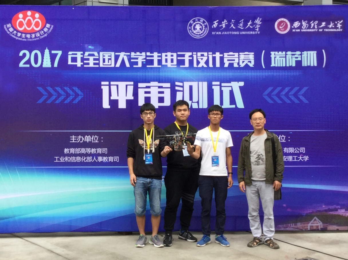 近日,从教育部高等教育司、全国大学生电子设计竞赛组委会传来佳讯,由工业中心曾宪阳、王善华两位老师指导,自动化学院谢一宾、能源与动力工程学院张杰、通信工程学院刘鹏程三位同学组成的代表队,所设计的《四旋翼自主飞行器探测跟踪系统》荣获全国一等奖,这是继2015年我校首次获得电子设计竞赛全国一等奖以来,又一次获得全国一等奖。