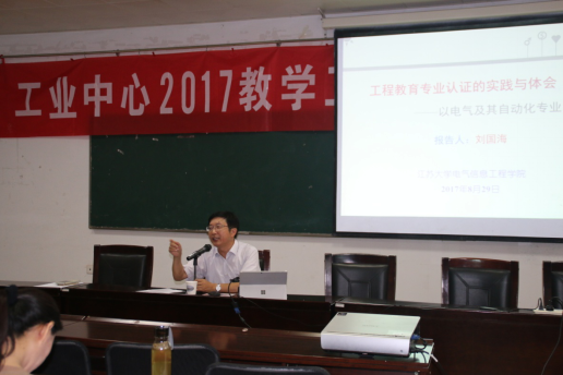 行了座谈会、为了进一步抓好基础教学规范,营造良好氛围,有的放矢做好本科教学审核评估各项准备工作,工业中心利用暑期,于8月28日至8月30日在学校召开了2017年教学工作会议。三天会议分别进专题报告会、教学经验分亨与交流会、教师说课与讲课点评与测试以及教案评比等。学校领导郑锋副校长专程到工业中心,查看了相关老师编写的工程化项目训练教材、讲义与教案,并与相关专家交流了我校工程教育改革和创新创业教育的理念、措施与做法,以及审核评估与新工科人才培养等内容。