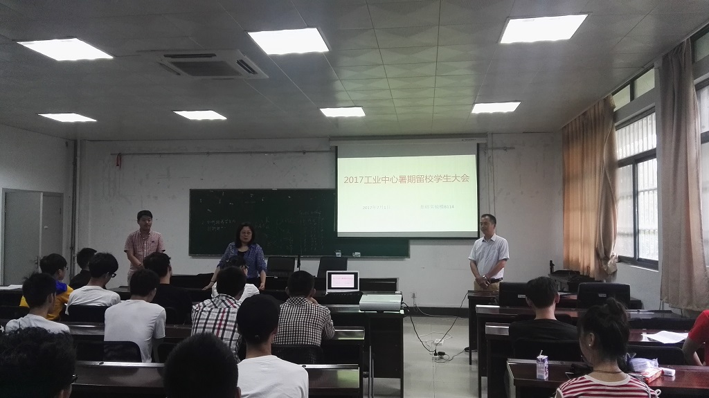 7月1日中午12:30,工业中心学工办在B114会议室举行了2017暑期留校学生大会,党总支副书记王灿参加大会。