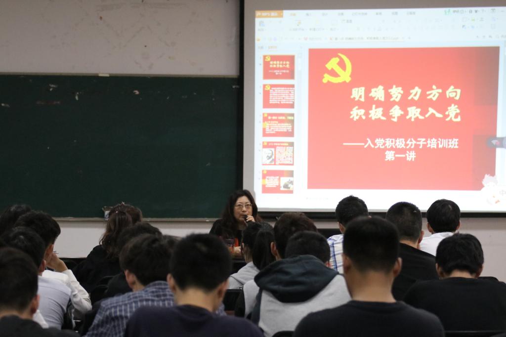 王书记首先对该期入党积极分子提出了纪律要求,希望同学们既然选择向党组织靠拢,就要时刻注意自己的言行举止,努力在同学中发挥先锋模范作用。在培训过程中,要以“空杯”的心态进行学习。王书记从时下热播反腐剧《人民的名义》谈起,教育在座的积极分子要树立科学的理想信念,端正入党动机。不仅要努力学习党的理论知识和党章,按照党员标准严格要求自己,自觉接受党组织的培养、教育和考察,定期向党组织汇报思想;同时需要遵纪守法,刻苦钻研学业,勤奋努力读书,积极投身社会实践,以实际行动争取入党。接着,王书记以“明确努力方向 ,积极争取入党”为题进行第一讲,从党的诞生、团结各族人民进行抗战、反抗国民党独裁统治、建立新中国以及改革开放的光辉历史,结合自己的亲身经历,讲述了我党带领全国各族人民的奋斗历程。她激励同学们要珍惜青春年华,发愤图强,争取早日向党组织靠拢。