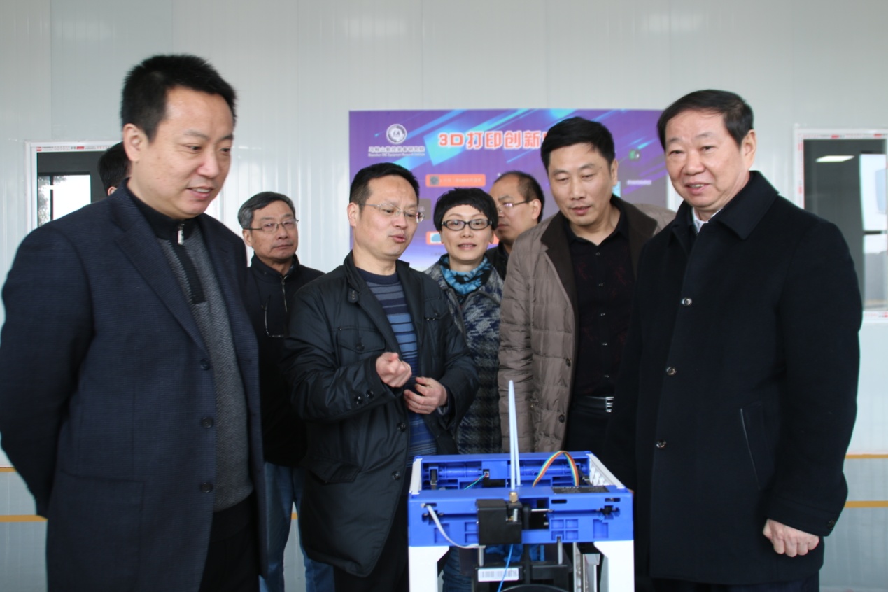 考察期间,左市长在机器人的引导下步入基地中试区,殷埝生副主任详细介绍了我校的历史、工业中心(创新学院)基本情况、研究院团队情况和目前与博望区多家企业的在研项目以及3D打印创新中心。左市长不时驻足停留,详细询问与区政府的合作进展和发展规划,对研究院目前的成果做了充分肯定。