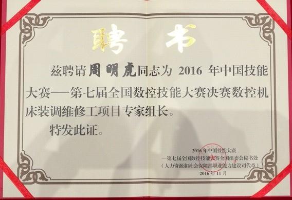 刚刚在北京落幕的第七届全国数控技能大赛决赛中,工业中心周明虎老师被人力资源和社会保障部聘为本次比赛五个赛项之一--“数控机床装调维修工”项目的专家组长,负责该赛项的设计、规程制订、命题、裁判员培训、执裁现场指导等工作,为大赛的成功举办作出了贡献。