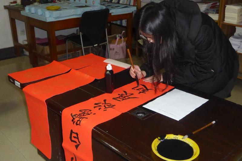 工业中心成功举办新春“春联汇”活动。1月13日下午1点半,工业中心团总支在B108举办了写春联,送祝福的“春联汇"活动。春联又名对联,春节张贴春联是汉民族特有的传统。春联集书法、文学、传统文化于一体,是中华民族的符号之一。