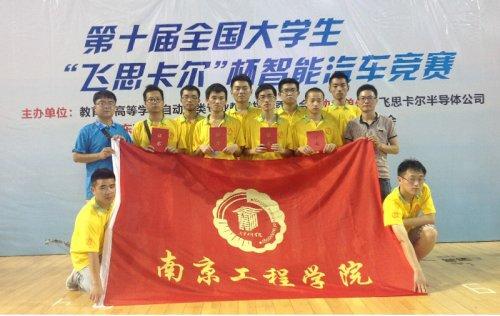 "飞思卡尔"杯全国大学生智能车赛是由教育部高等学校自动化类专业教学指导委员会主办,飞思卡尔半导体公司协办,华东区比赛由常熟理工学院承办,采用邀请赛方式。比赛以智能车竞速为主题,包括电磁车竞速、摄像头车竞速和光电平衡车竞速三项竞赛。与往届的主要区别是:电磁组采用双车跟随形式,光电组和摄像头组的发车和停车须遵从灯塔信号指示。我校汽车与轨道交通学院黄乾坤、许泽栋和康尼学院马炜烨组成的摄像头代表队获得二等奖,自动化学院张毓斐、俞鹏和工业中心计晨旭组成的摄像头代表队获得二等奖,自动化学院袁景光、丁宗尧和王武明组成的电磁代表队获得二等奖,另有两支代表队获得优胜奖。