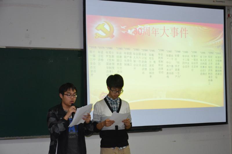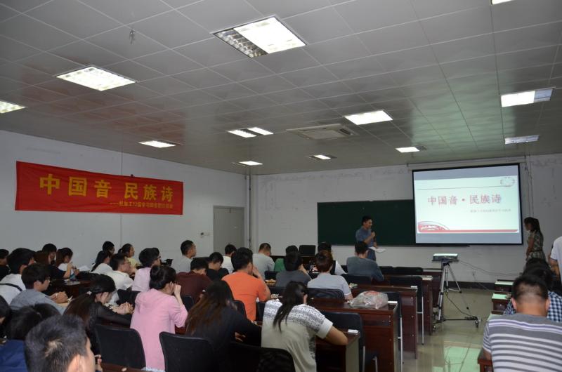 2015年5月16日晚7点,机加工12级中国音 民族诗团日活动在B114举办。中国音是指新中国建立以来,各个历史时期具有代表性且广为传唱歌曲;中国诗是指与歌曲时代相合的诗词篇章,同学们在活动中朗诵了部分诗词作品。通过对这些歌曲和诗词的欣赏,达到了解国家发展的轨迹,增强“四信”的目的。