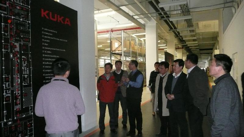 9号上午,KUKA机器人(上海)有限公司首席执行官(CEO)孔兵先生热情地接待了大家,并简要介绍了KUKA工业机器人产品类型及公司发展战略,陪同大家参观了机器人生产车间、检测工作站和培训中心等;孙校长也介绍了我校的办学特点及优势,并就我校围绕中国制造2025发展战略的总体需求,进行专业人才培养,同时畅谈了学校与企业展开深入合作的想法。