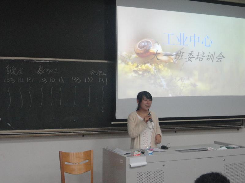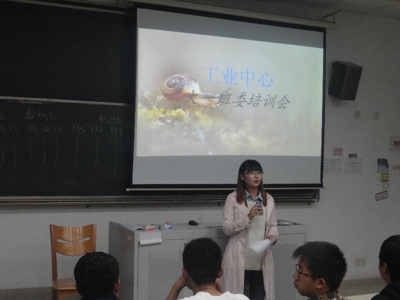 10月30日,工业中心在东C301举行2013级班委培训班,邀请了“江苏省三好学生”刘婷、“江苏省优秀学生干部”徐永赛作为优秀班委代表向大一班委传授经验。