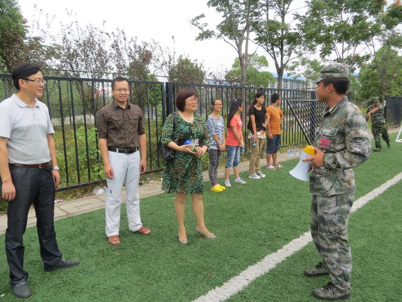 9月23日下午,我中心周明虎书记、王灿副书记带领学工办老师亲赴军训现场,指导学生军训并慰问教官和我中心2013级参训学生。