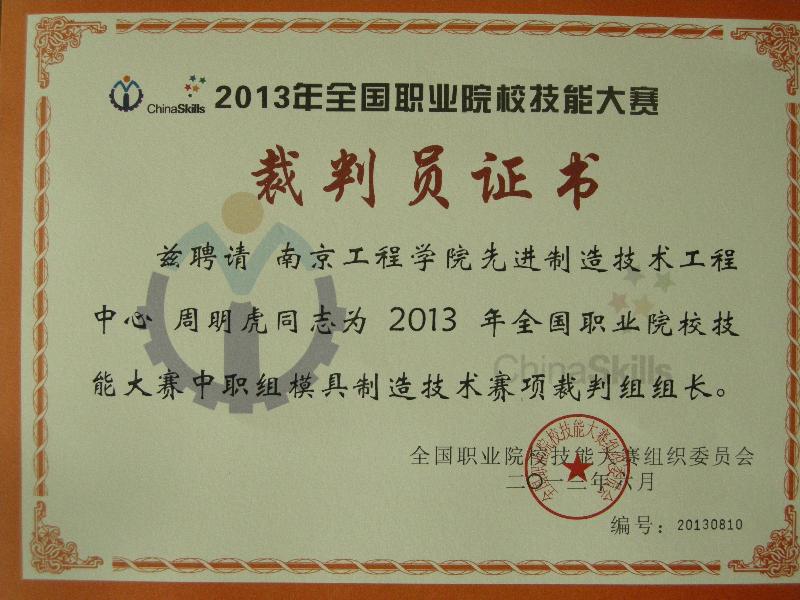 不久前在山东诸城结束的“全国职业院校技能大赛中职组模具制造技术赛项”中,工业中心周明虎老师被大赛组委会聘任为裁判组组长,为大赛的顺利进行做出了贡献。