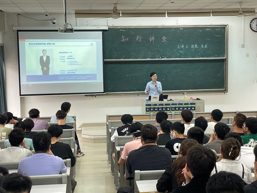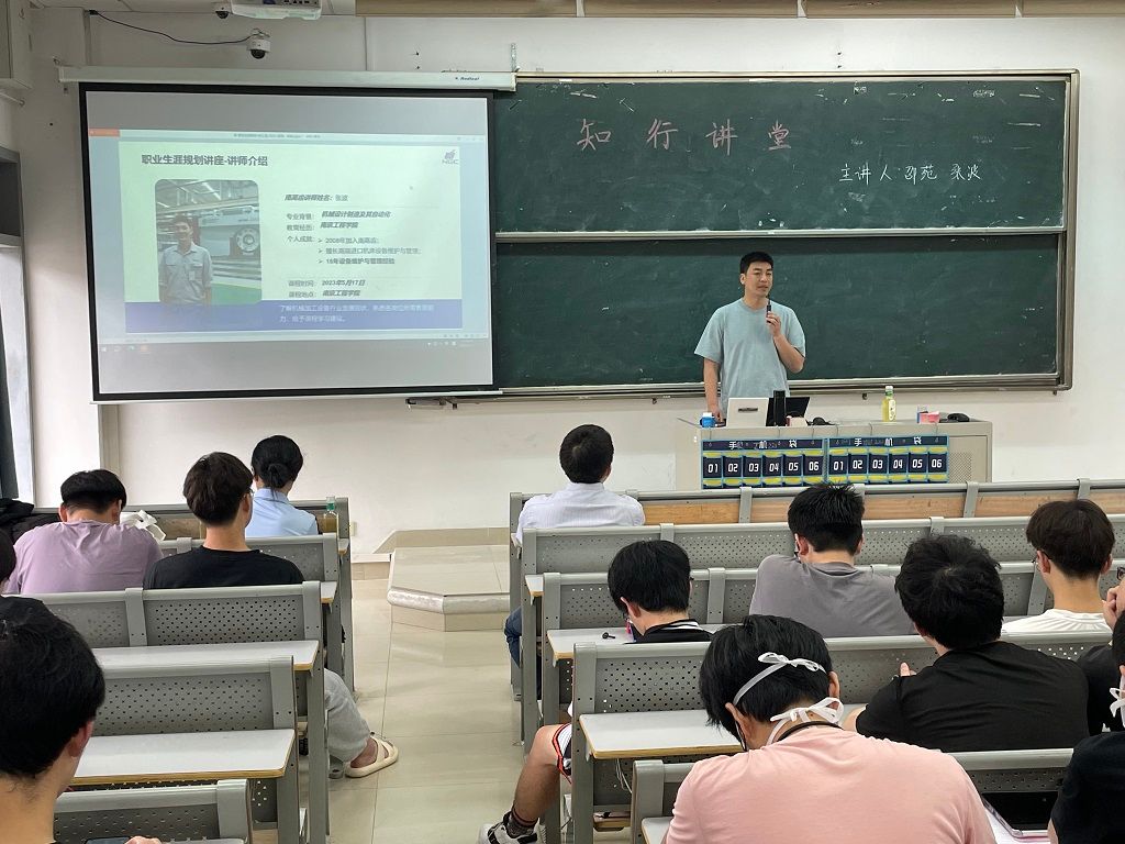 5月17日下午,工业中心品牌活动“知行讲堂”第二十四期活动顺利开展,中心邀请南京高精齿轮集团有限公司人力资源部经理邵苑、风电事业设备部经理张波为2021级学生做职业规划讲座,该讲座将职业规划教育与专业教育相结合,取得了良好效果。张波经理是工业中心2008届优秀校友。