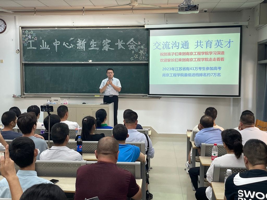 中心主任丁文政就南工程办学历史、工业中心组织架构、师资队伍、人才培养等方面作了详细介绍,带领新生家长了解中心的优势与特色,并鼓励同学们积极主动与学院老师们沟通联系,积极适应学院生活,养成阅读习惯,努力全方位地提升自己,为自己的未来打下良好的基础。