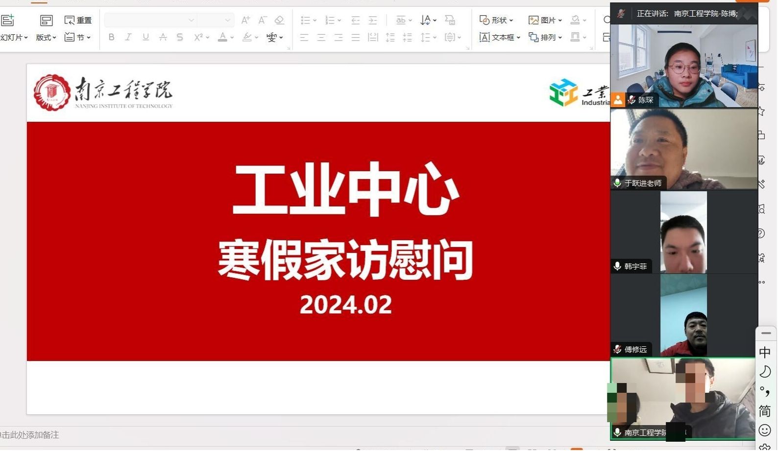 工业中心成立线上家校联系工作组,努力提高家校联系的覆盖面。校学生工作处副处长于跃进作为结对干部,参加了与毕业班某苏州学生家庭的春节连线。他首先肯定了该同学努力奋斗的精神和取得的优秀成绩;其次,他针对该生已经签订就业工作的情况,为学生做了职前教育和就业指导,他建议学生积极做好入职前的准备,可以进行适当的企业实习。他告诉学生职业和家庭是人生重要的两个方面,要保持健康的身心状态,干好工作,回报家庭。在线上家访中,各位老师通过与家长交谈,详细了解学生的成长环境、家庭情况以及存在困难,也向家长反馈学生在校期间的日常表现与学业情况,听取家长对资助共工作及学生教育的建议,为进一步做好家校联动工作奠定了坚实基础。
