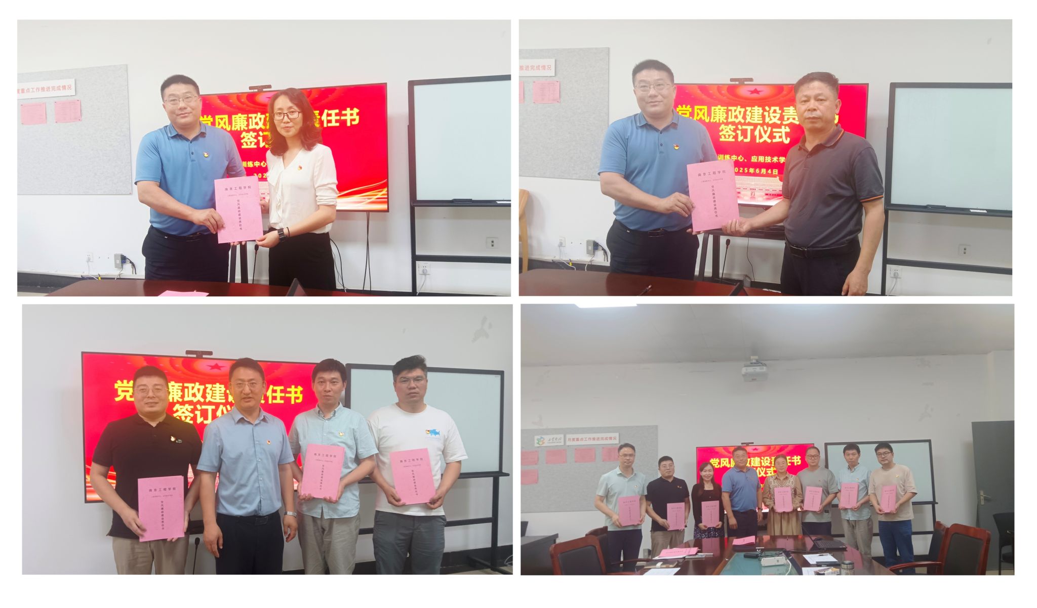 会议采用“分级签约、逐级压实”模式:学院党委书记石贵舟与院长张亮共同签署《党风廉政建设主体责任书》,明确领导班子“第一责任人”职责;学院党委书记与各支部书记签订《支部廉政建设承诺书》,细化组织生活会、谈心谈话等具体任务;学院党委书记和院长共同与部门负责人签署《岗位廉政风险防控责任状》,针对教学管理、实验室安全等岗位特点制定个性化防控措施。各部门负责人郑重承诺:“守纪律、讲规矩,清白做人、干净做事”。