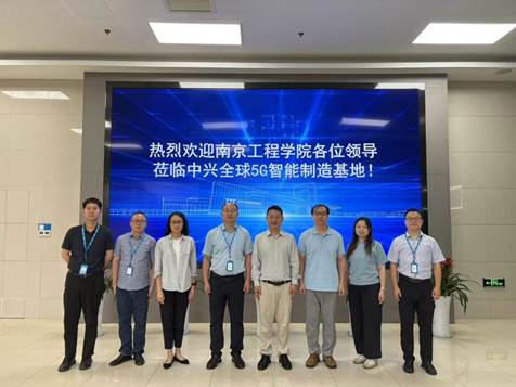 6 月 11 日下午,南京工程学院工程训练中心、应用技术学院院长张亮率骨干教师团队,走进中兴通讯南京滨江5G智能制造基地开展参观考察活动,江宁区工信局蒋继平应邀出席,多方围绕产教融合、职业技能、高水平复合型数字人才培育等方面展开深度交流。