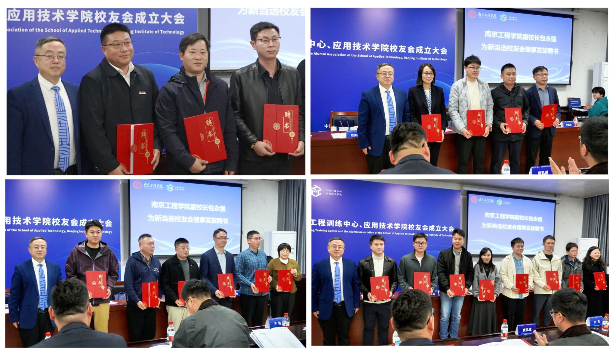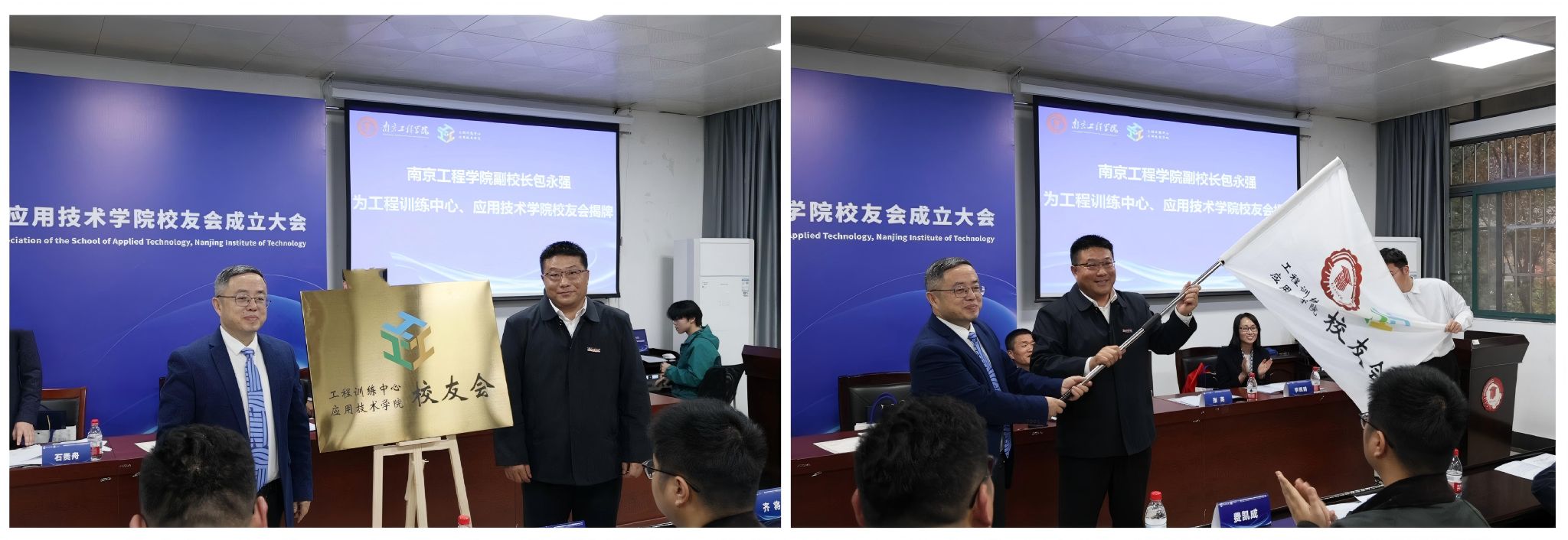 李贵平宣读《南京工程学院校友会关于成立工程训练中心、应用技术学院校友会的批复》。会议审议并通过了《南京工程学院工程训练中心应用技术学院校友会章程》、理事会候选人名单。包永强与石贵舟共同为“南京工程学院工程训练中心、应用技术学院校友会”揭牌,并授予会旗。