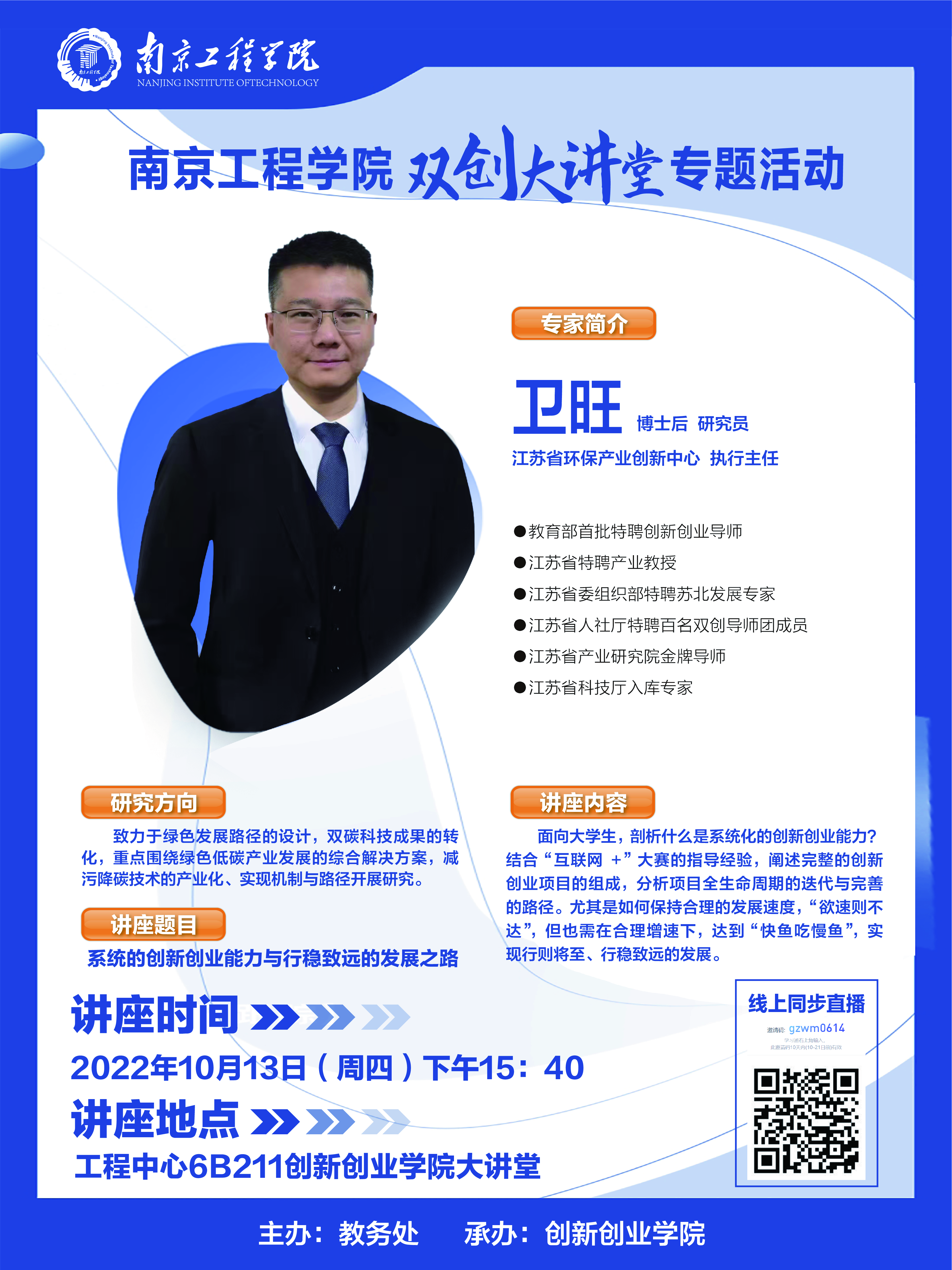 南京工程学院“双创大讲堂”专题活动——系统的创新创业能力与行稳致远的发展之路