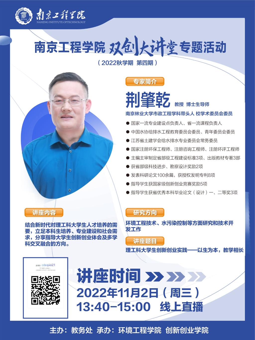 南京工程学院“双创大讲堂”专题活动四——理工科大学生创新创业实践—以生为本,教学相长