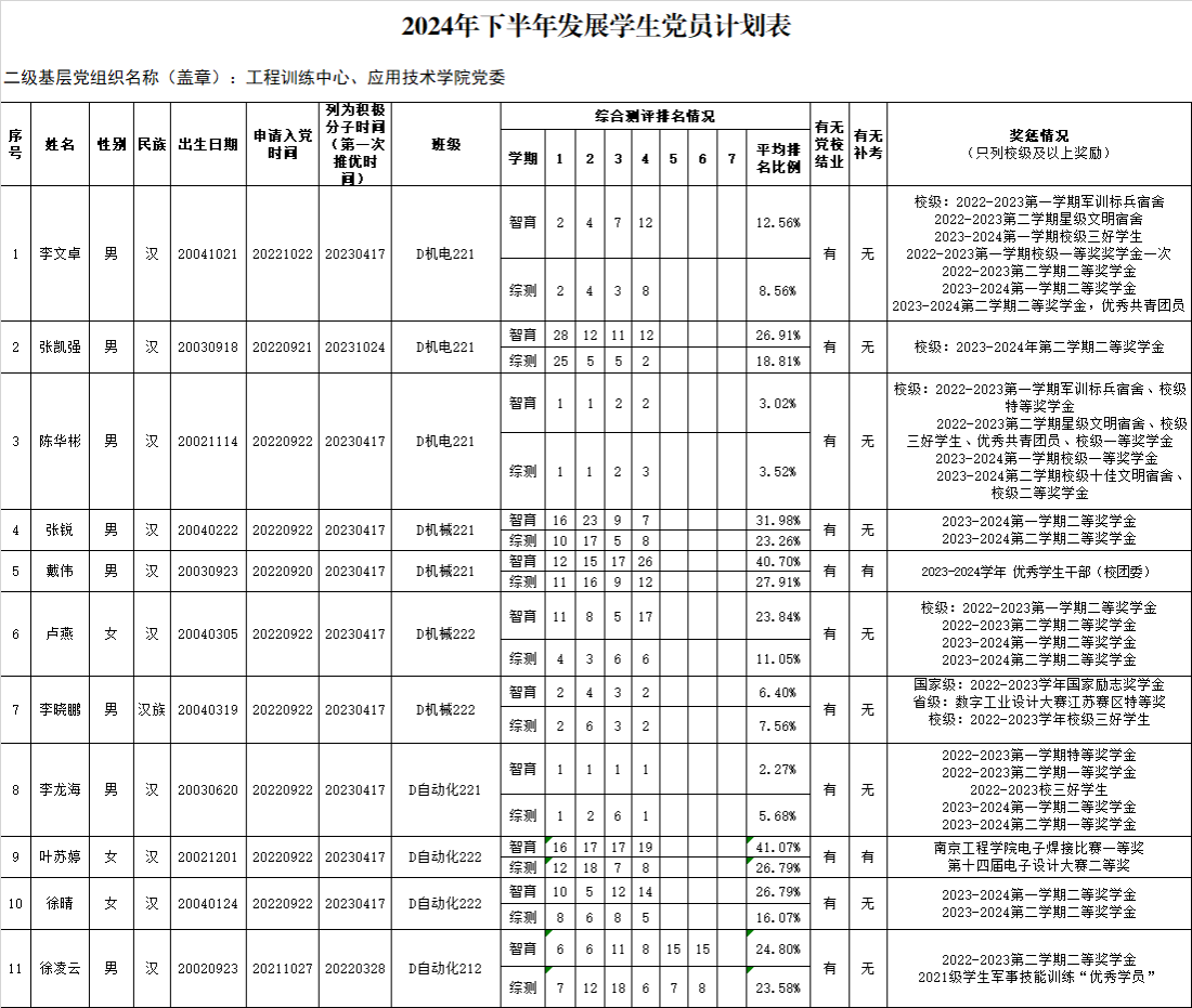 工程训练中心、应用技术学院学生党支部拟于近期讨论接收李文卓等十一位同志为中共预备党员。现将有关情况公示如下: