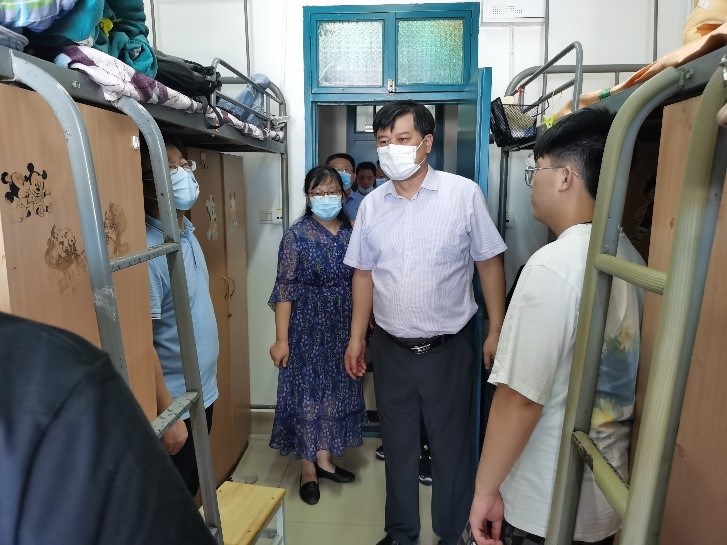 在新生宿舍里,朱晓春副院长与同学们亲切交流,了解他们的入住情况,详细询问同学们来自哪里、饮食是否适应、生活上能否习惯,并不时叮嘱同学们要尽快适应新环境,及时调整状态,互帮互助,融入集体。他还重点提醒同学们要提高安全防范意识,注意用水用电安全,妥善保管自己的贵重物品,疫情防控措施一点不能放松。