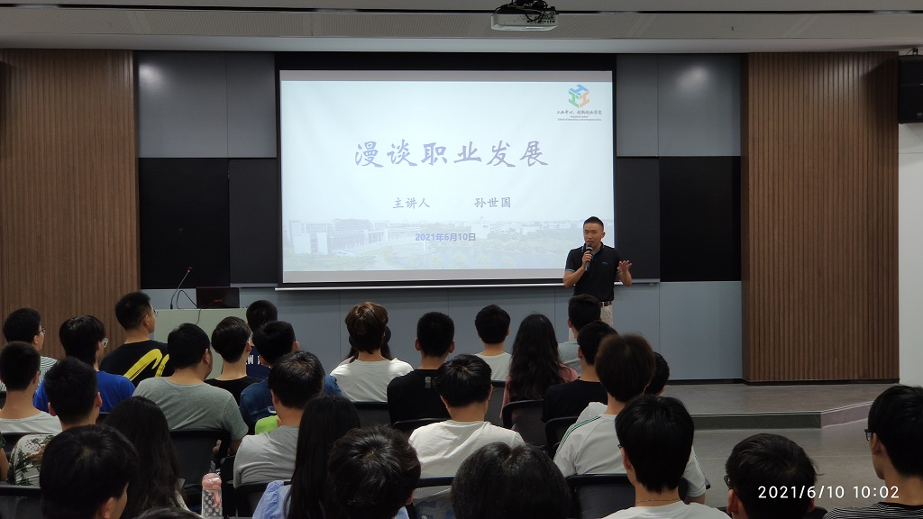 6月10日,工业中心“谷德”优秀学生奖学金颁奖仪式工程中心六号楼B211报告厅举行,江苏谷德运维信息技术有限公司CEO孙世国先生参加颁奖仪式,并为2018级同学做“漫谈职业发展”报告。