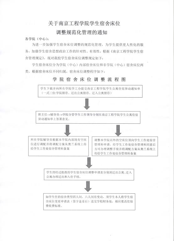 学生宿舍床位规范化调整通知(2018年6月5日)