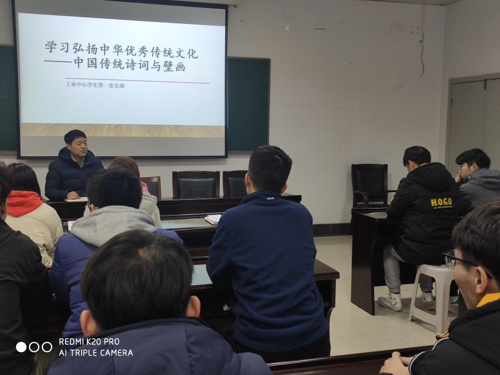 为提升学生党员综合素质,12月10日,工业中心学生第一党支部开展了以学习了解中华传统诗歌和壁画知识为内容的党日活动。