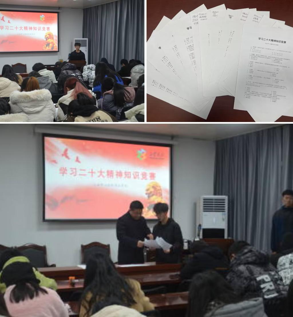 创新学习形式,举办二十大精神学习竞赛。中心党委副书记石贵舟老师指导4个学生支部筹划举办二十大精神知识竞赛,于11月30日在基础实验楼B114教室成功举行。中心全体学生党员及部分同学共计一百多人参加了“学习二十大精神”知识竞赛,竞赛题目由党支部师生共同收集整理,中心党委审定。学生党支部书记和辅导员老师也与同学们同场答题,共学二十大报告相关知识。