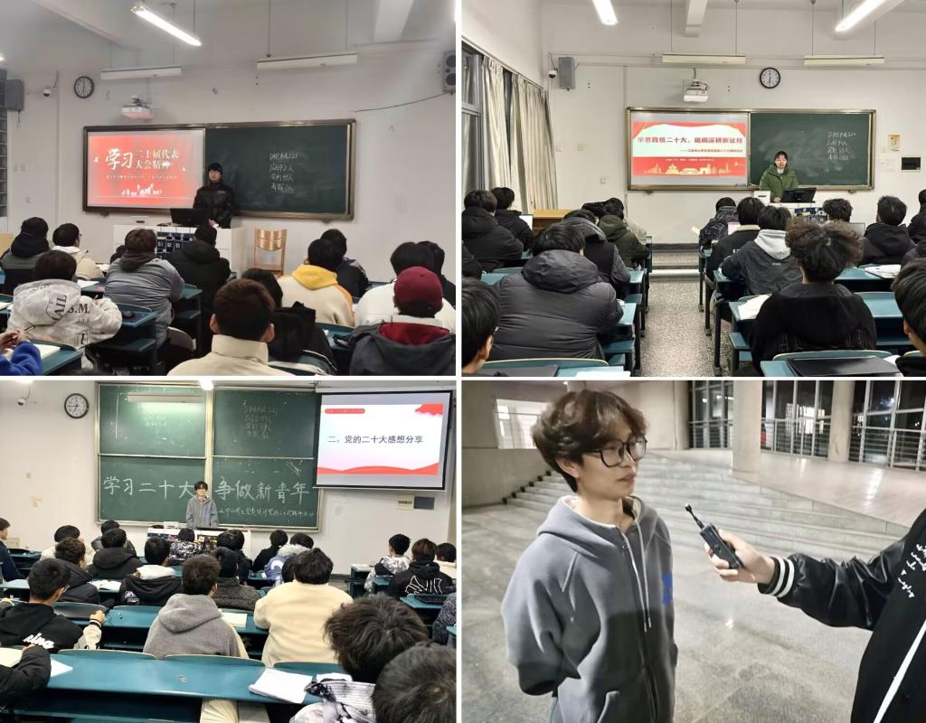 强化使命担当,积极传递二十大精神。工业中心学生党支部党员认真学习党的二十大精神,并纷纷走进党支部联系对接的班级,与普通同学沟通交流,宣传党的二十大精神。机械学生支部党员,D机加工192班丁宇是国家奖学金获得者,她以“学思践悟二十大,砥砺深耕新征程”为题,与D机械222班同学共同学习了二十大报告“完善科技创新体系”部分,号召新生坚定信心,打好基础,为国家科技发展做贡献。学生党员查道奇表示:作为学生党员我们有责任起到先锋带头作用,把党的指示传递给同学们,也要带动普通同学切实践行“四个自信”,坚决做到“两个维护”。