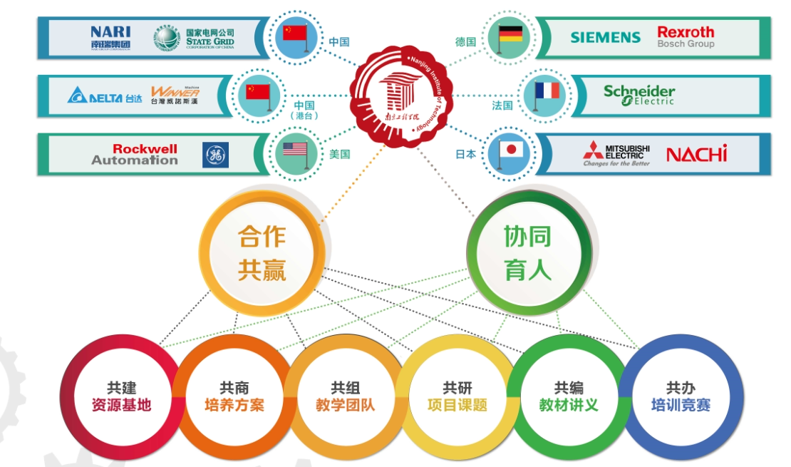 坚持深化校企合作,积极推进项目共研、资源共建、人员公用、成果共享、人才培养共担,不断提升协同育人的内涵。先后与美、日、德、法等国家以及国内的世界500强企业开展了大规模的校企合作,共建高层次的实验室、实训基地或培训中心,共建覆盖各专业的专业建设指导委员会,研发系列自制教学仪器装备,合作编写配套教材,形成校企合作教育年会,创新创业训练计划项目和竞赛机制,共建教学科研团队,共同开展教学科研活动。